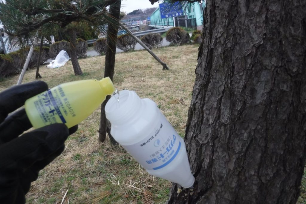 松の木に薬液注入を行いました